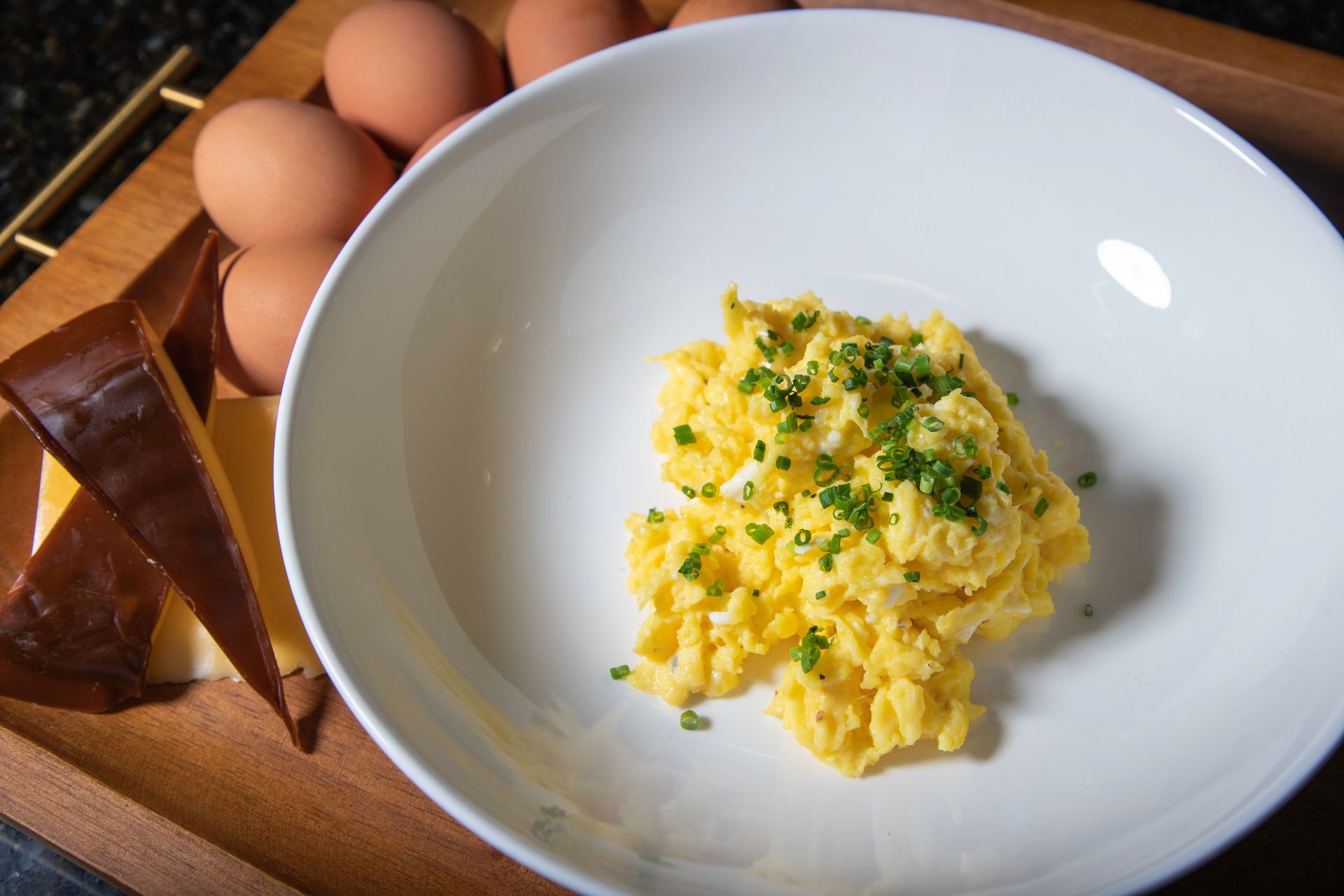 Cook slowly until the eggs are creamy and softly set — never dry.